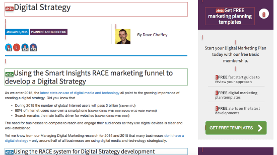 For reviewing on-page markup like headings and also mobile screen resizing I find Chris Pederick's Web Developer Toolbar for Chrome and Firefox essential. The Moz Toolbar is better from an SEO POV. Here's an example of the overlay to show our 'semantic markup':