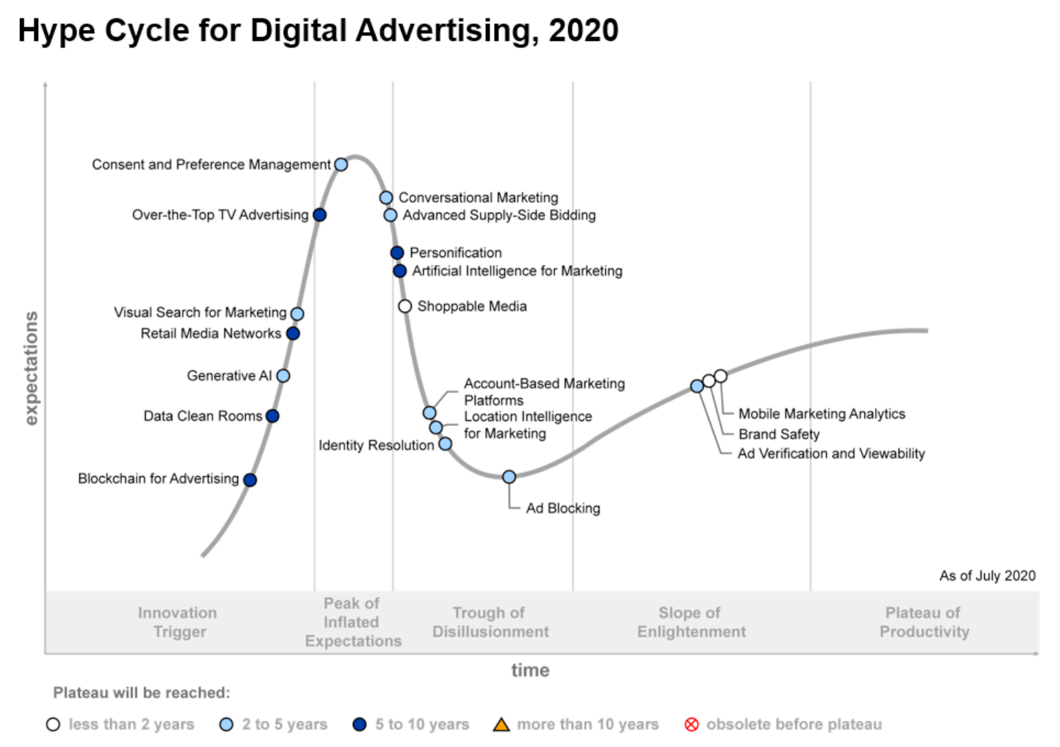 Here is the chart from Gartner of the 2020 digital marketing hype cycle.