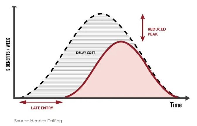 Delayed product launches may mean your software won't be received in the same way as it could have been at your anticipated on-time product launch. In some instances, missing the boat here could significantly impact your product's financial viability, despite costing the same amount to set up. This is called 'delay cost'.