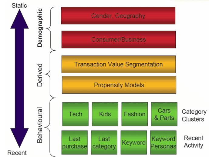 Often the different targeting options can be combined through layering the segmentation as shown in this approach used by eBay UK shared at a recent email marketing conference: