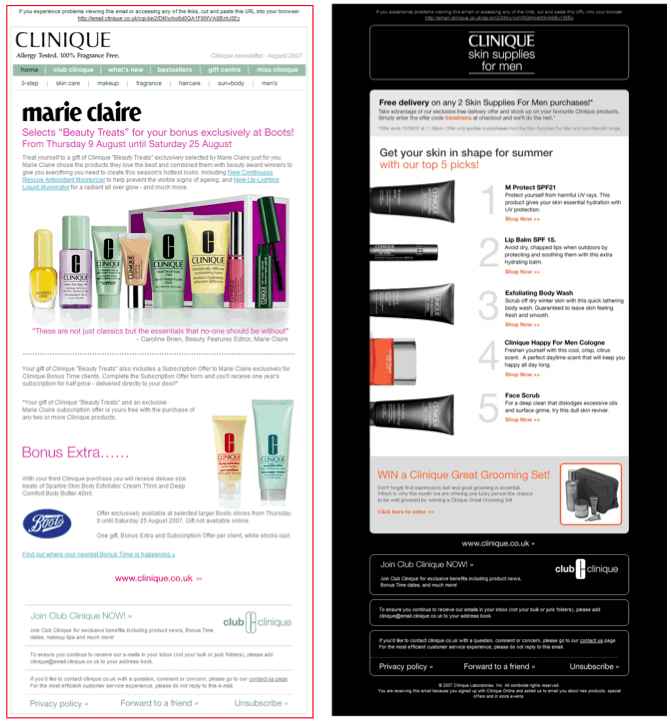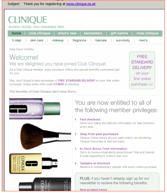 This is an example of what I think is an excellent branded welcome email from Clinique: