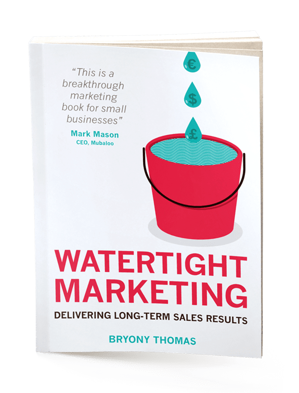Thanks to Bryony Thomas for sharing her thoughts and opinions in this blog post. She is the best-selling Author and Founder of Watertight Marketing, and a no-nonsense marketer and business speaker, specialising in helping ambitious small businesses set things up. Her blog post is adapted from her 5-star book, Watertight Marketing, described as an entrepreneur’s step-by-step guide to putting a marketing operation in place that delivers long-term sales results. You can download a free sample chapter or connect with her on LinkedIn, Twitter, Google+ or Facebook.
