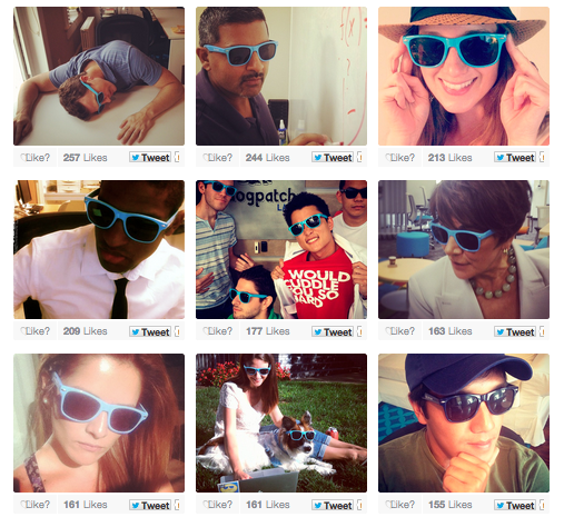 - When a customer’s shades arrive, there’s a sticker on the packaging that asks them to tweet us a photo wearing their shades.