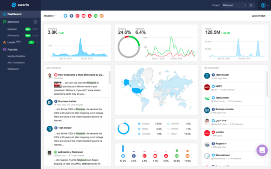 Awario is a social listening tool that analyzes publicly available online data based on the keywords you choose to put in. This makes the tool extremely versatile: it provides you with valuable insights on your brand, your audience, your competitors, influencers in your industry, ect.