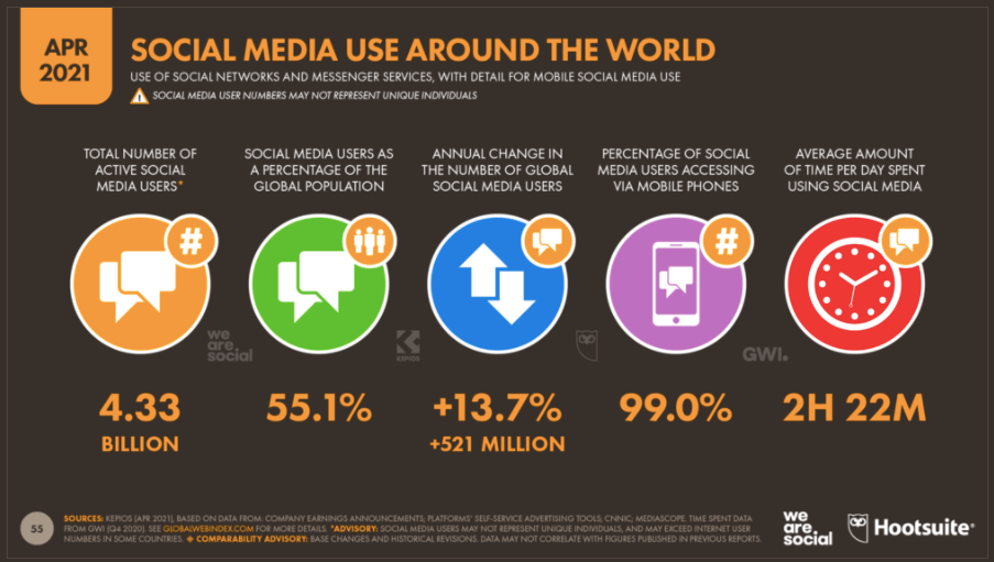 Now, as of April 2021, the total number of active social media users has grown again, to 4.33 billion. That's an increase of 9.6% in 9 months. So, we're well on track to beat YOY growth by July, again. And as the social community increases, so do the opportunities to reach, interact with, convert and engage your target audience.