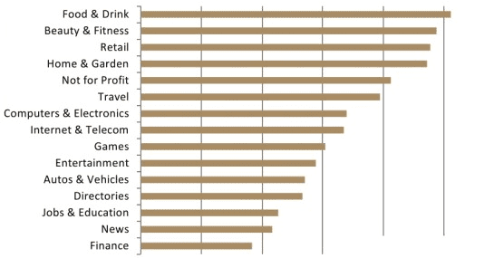 As would be expected lifestyle-related sectors are highest, but transactional sectors like Retail, Travel and Computer and Electronics aren’t significantly lower. As might be expected Finance is at the base of the league table.