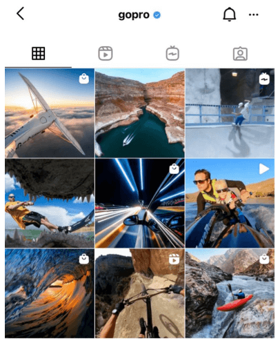 GoPro's Instagram feed is flooded with UGC images, all using the brand hashtag. The images that are collated and used are high quality, on-brand, and show the benefits of the product without costing a penny.