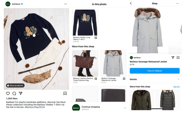 - Instagram shopping Tags: Tags that feature products from a catalogue can direct customers to purchase those products from a website or in-app.