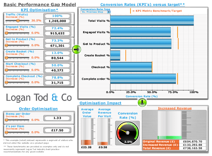 Finally, the most impressive/accurate conversion model is from Matthew Tod of Logan Tod which he uses to demonstrate improvements to clients or when training on Ecommerce sales optimisation. If you follow the link below you'll see that this fully interactive - no spreadsheets required!