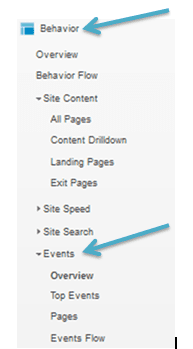 Initially, if we want to find where the Events are located, we can find them under the Behaviour section. Under the Events subsection: