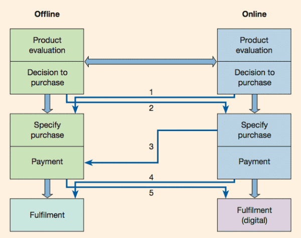 We recommend an omnichannel approach to customer conversion. The diagram below, from our multichannel selling module in the RACE Practical Digital Strategy Learning Path, demonstrates online and offline decision-making. As you can see, to ensure the most effective approach to customer conversion, manufacturing marketers need to integrate online and offline marketing and sales processes.