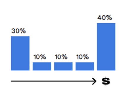 - Position based attribution model: This model assigns weighted credit to the first interaction, middle interaction and last interaction.