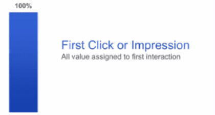 - First interaction attribution model (popularly known as First touch attribution model): This model assigns 100% credit to the first interactions.