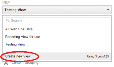 Select the view you wish to apply your Calculated Metric too. You should have at least 3 views- Raw data, Reporting Data and Testing Data, you can have up to 25 views, they are quick and easy to create just click ‘Create new view’ and follow the steps to complete.