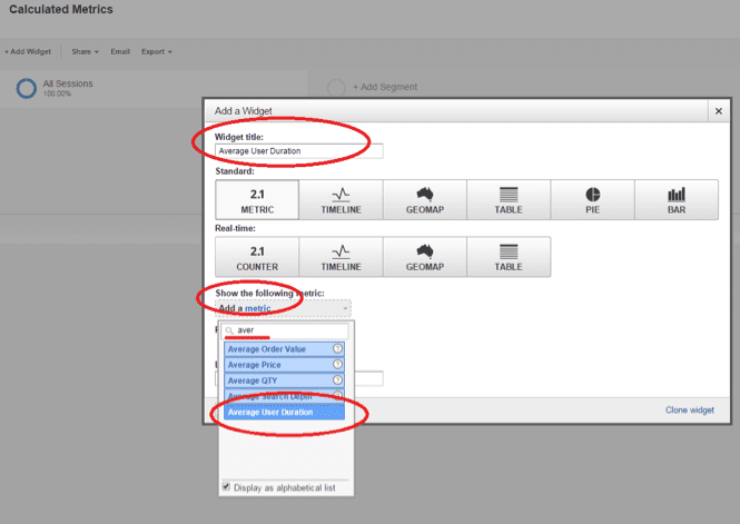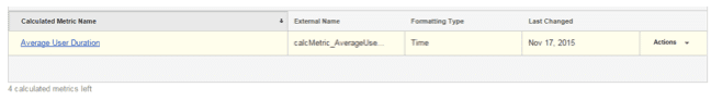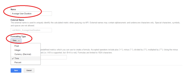 Name : Give your metric a name, make sure you are descriptive so it makes sense to users who have access to your data , eg Average User Duration not Calculated Metric 1.