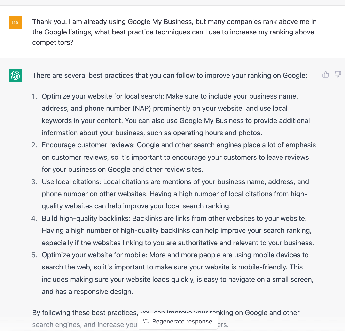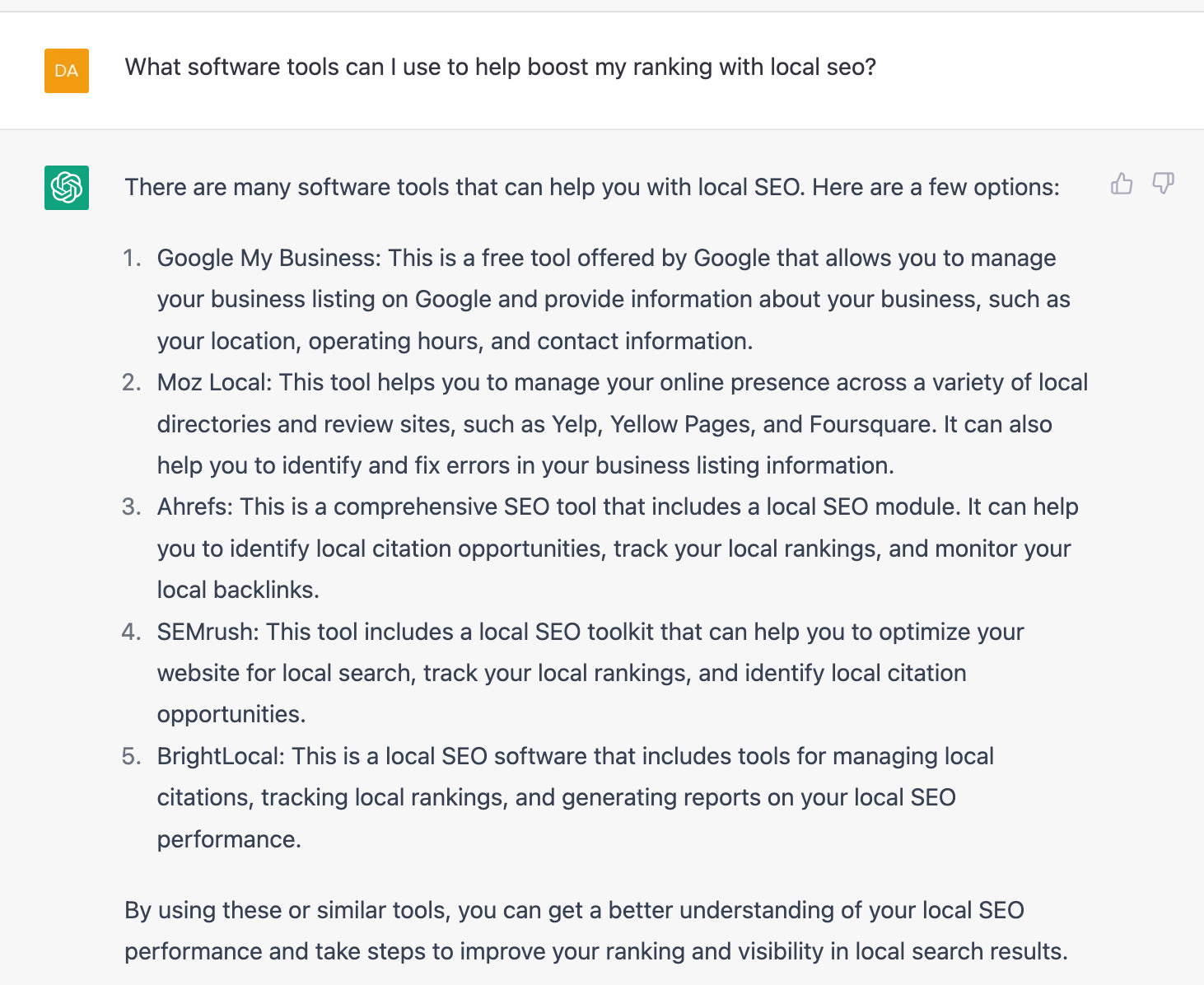 I thought I’d test it further by asking specifically about local SEO…