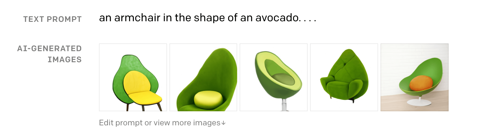 Google is also superior in providing different types of results for different types of intent, certain results highlight images or video for example. These visual tools are important to learning yet ChatGPT doesn’t incorporate these… yet. Interestingly, Open AI has created DALL·E, an AI to create Images from Text. I’m not sure of the marketing applications of an armchair in the shape of an avocado…