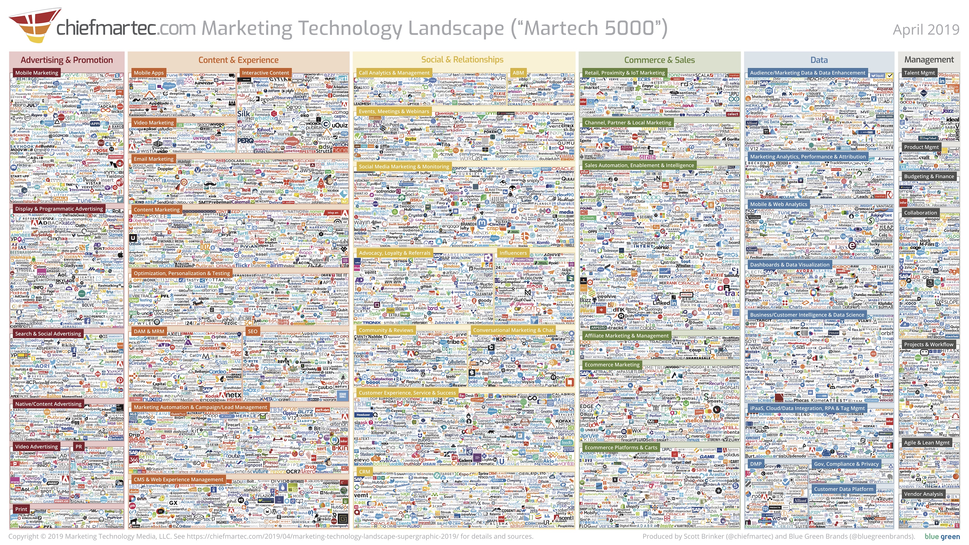 From a more technical perspective, a lack of planning limits a business’s ability to organize and coordinate technology. The 2019 Marketing Technology Landscape Supergraphic shows that there are now over 7,040 martech solutions at our disposal. How can a company manage, merge and coordinate multiple martech tools without an aligned understanding as to how they fit together?