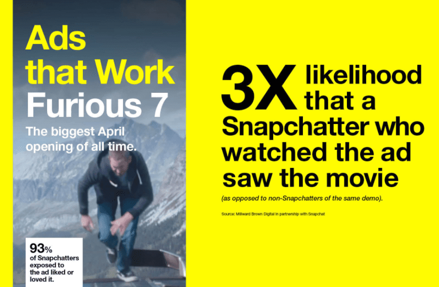 - A Geo-filer ad delivered nationally will be seen by 40-60% of Snapchats daily users (Source: Snapchat)