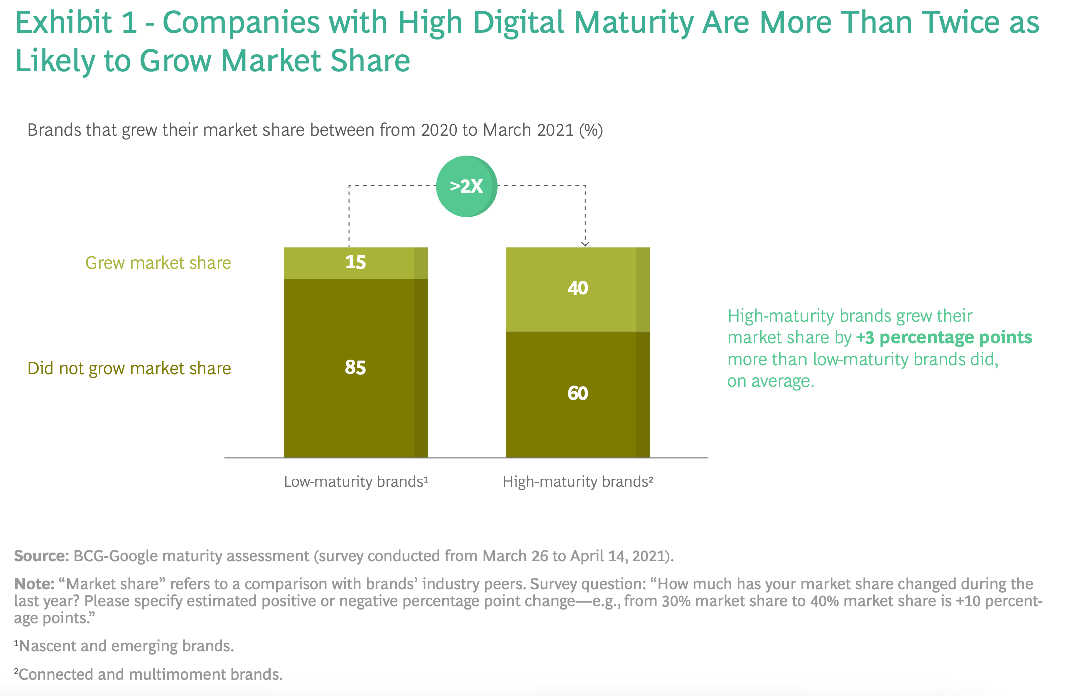 In August 2021, Google released the appealingly, but likely misleadingly titled Fast track to digital marketing in association with Boston Consulting Group who created the report.