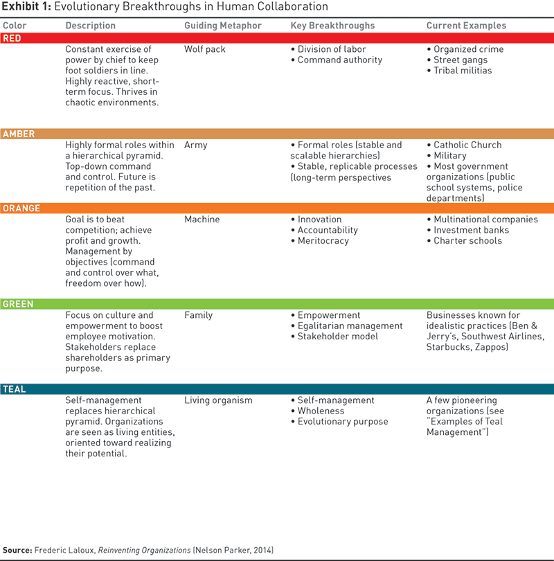 Organizations need to assess their structures and hierarchies to ensure there is flexibility in their customer-first approach by seeking innovation, feedback and insights from their customer base if they’re keen to retain brand loyalty. The chart below on the evolution of different forms of organization shows how the most innovative and productive businesses encourage self-management and value a motivational company culture.