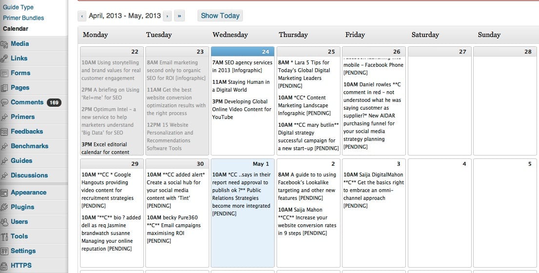 In this post I wanted to share a tool we use with it for managing posting on the Smart Insights website - The WordPress Editorial Calendar plug-in. It will be particularly interesting for WordPress bloggers who don't know about it, but may also interest others since it shows how you can make your editorial process more streamlined. I first heard about this plugin through Chris Brogan who describes how he uses it.