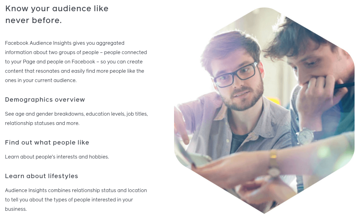 With a tool like Facebook Audience Insights, you can input a few details and then get more details from Facebook's huge database.