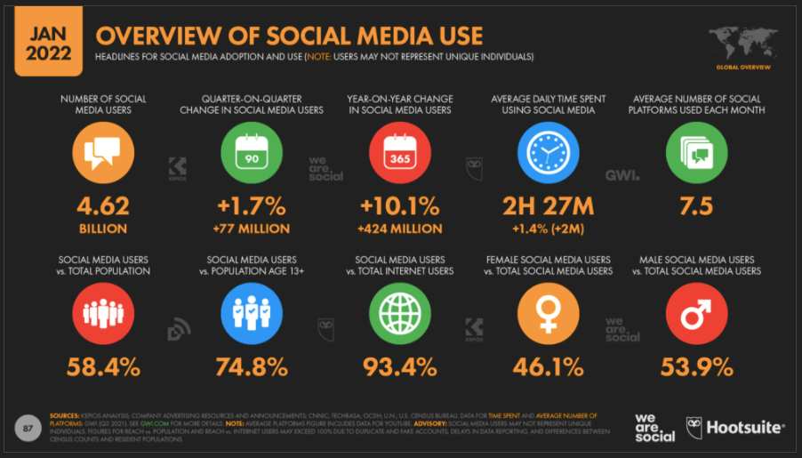 Undoubtedly, there are plenty of opportunities for social media marketers to achieve their objectives in the next 12 months. You can find all the latest social media stats to inform your marketing strategy in our global social media statistics research summary 2022.