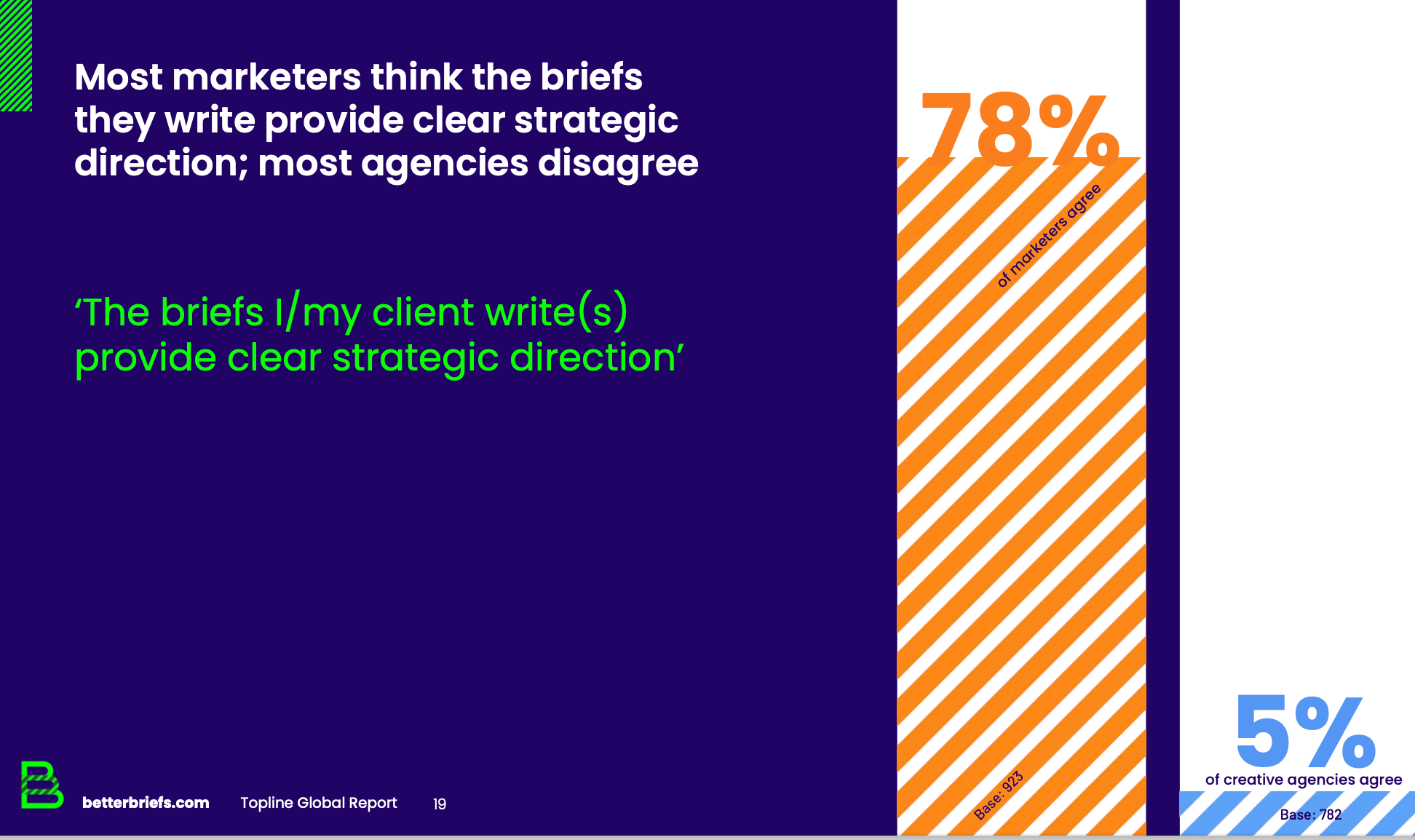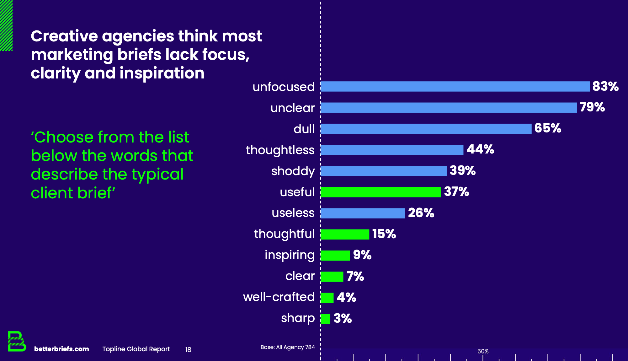 82% of marketers and 83% of creative ago agencies agree that writing briefs is hard, regardless of their years of experience, so that's one of the reasons, but why?